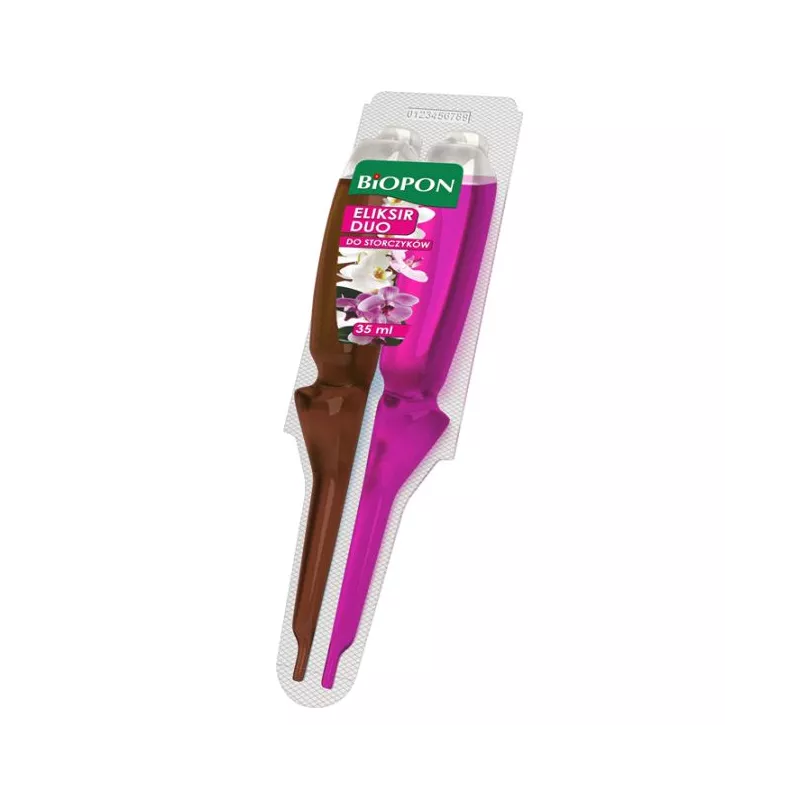 Innowacyjny, dwuskładnikowy preparat przeznaczony do pielęgnacji wszystkich gatunków storczyków. Zalecany w szczególności do kwiatów z problemami (powolny wzrost, słabe kwitnienie, zeschnięte korzenie), ale może być również stosowany profilaktycznie u roślin w dobrej kondycji. Specjalnie dobrane składniki eliksiru dbają o piękny i zdrowy wygląd kwiatów oraz liści zasilanych roślin, a synergiczne działanie różowej i brązowej części zapewnia doskonały efekt pielęgnacyjny.