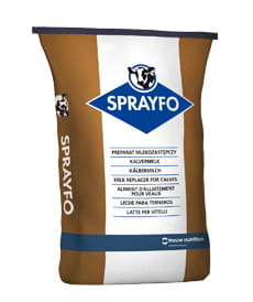 Stosować u cieląt od 21-go dnia życia. Wymieszać w proporcji 1:9 (111 g/l wody), tzn 1 kg Sprayfo + 9 l wody = 10 l mleka. Mieszać w temperaturze 45-55 oC. Pojenie powinno odbywać się w temperaturze 40-42oC. Zalecany 3 dniowy okres przejściowy przy zmianie preparatu. Produkt pęcznieje po rozpuszczeniu w wodzie. Odpajać po 5-10 min. od rozpuszczenia w wodzie
